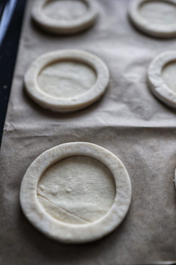 - Puneti cate un inel peste fiecare cerc plin si presati usor marginile.